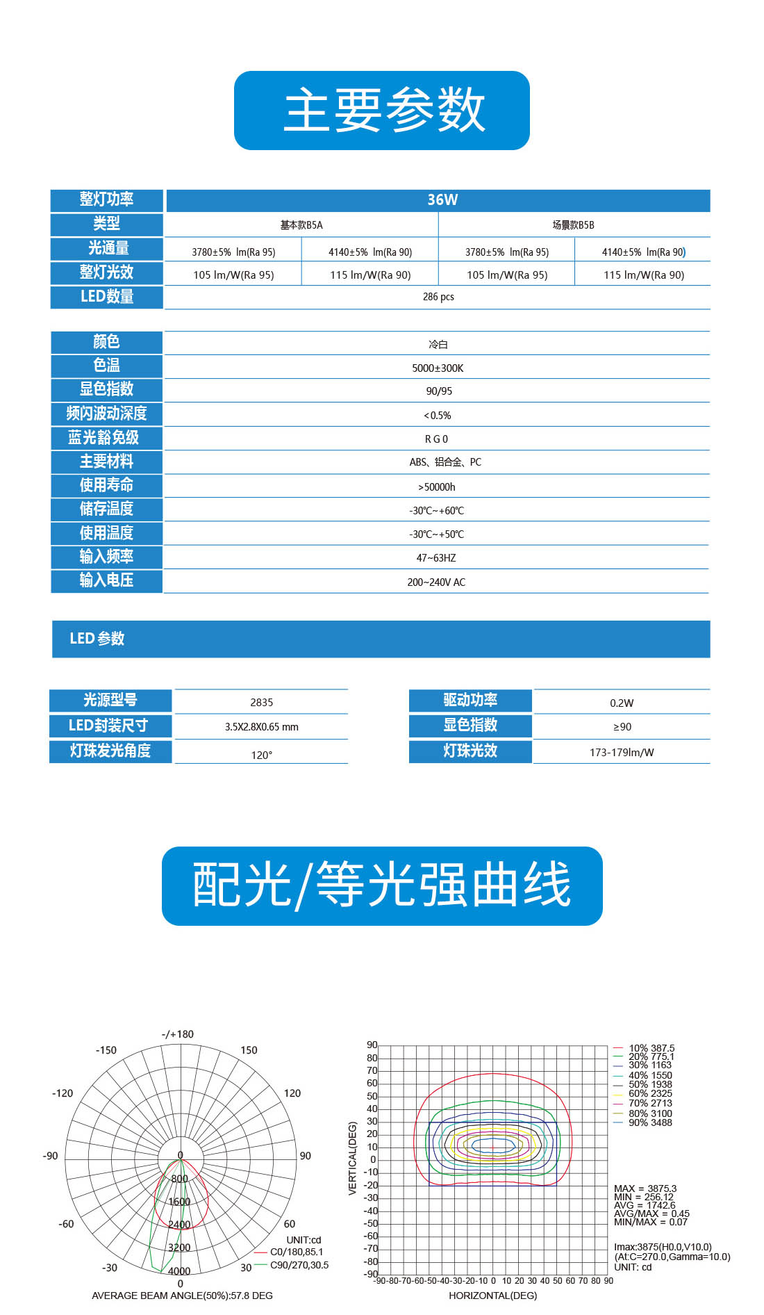 采用優質SMD光源,顯色指數>90藍光豁免級RGO。
