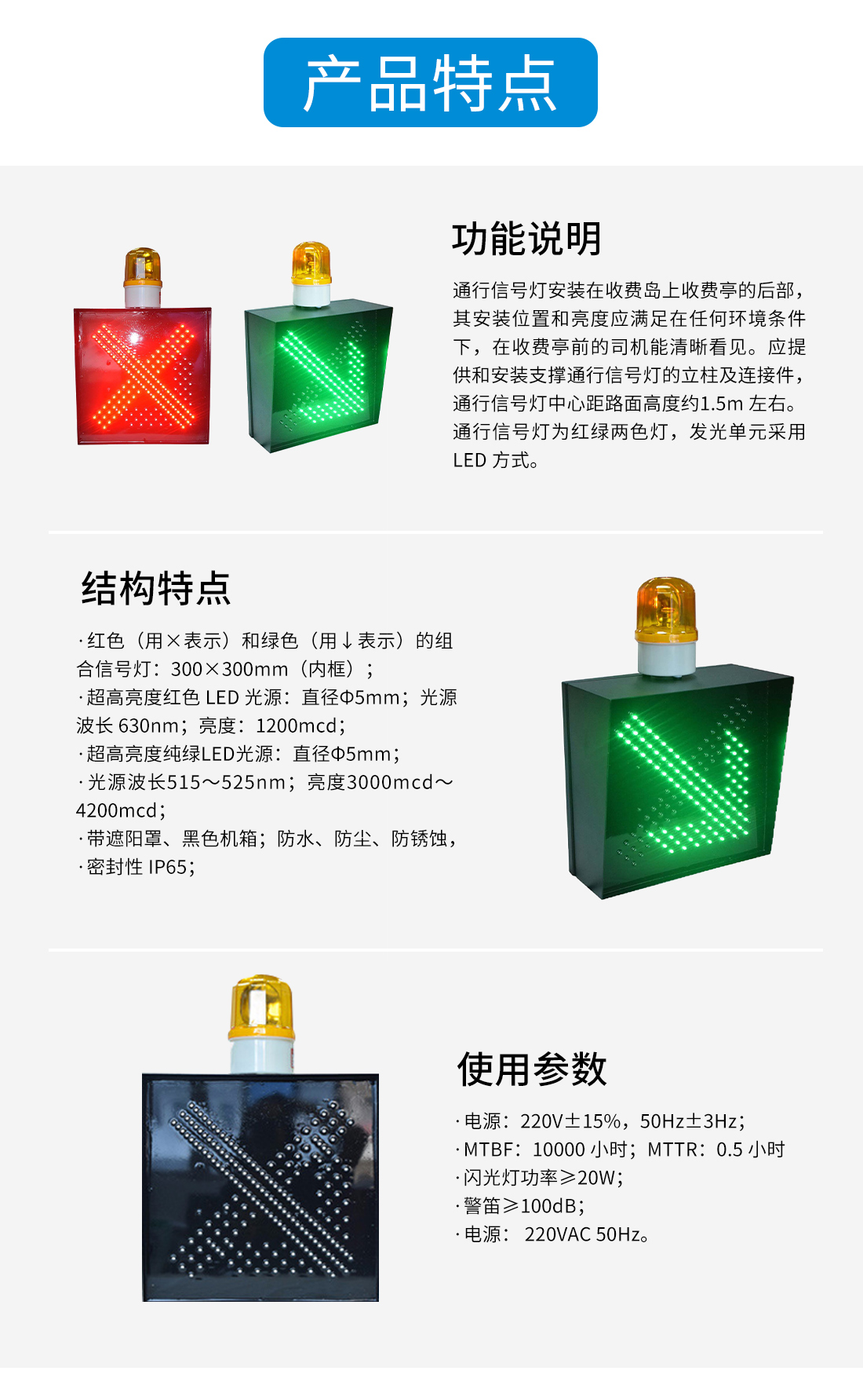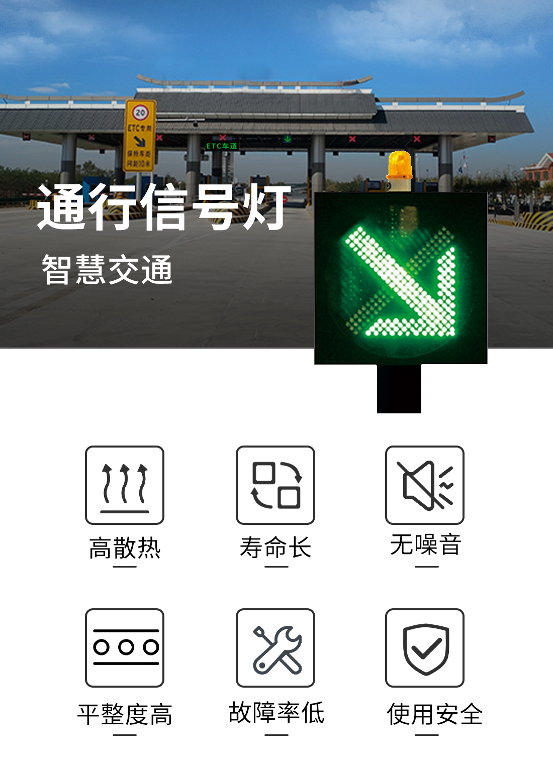 通行信號燈為紅綠兩色燈,含黃色聲光報警器,安裝在ETC入口收費島收費亭的后部,其安裝位置和高度應滿足在任何環境條件下,司機都能清晰看見。