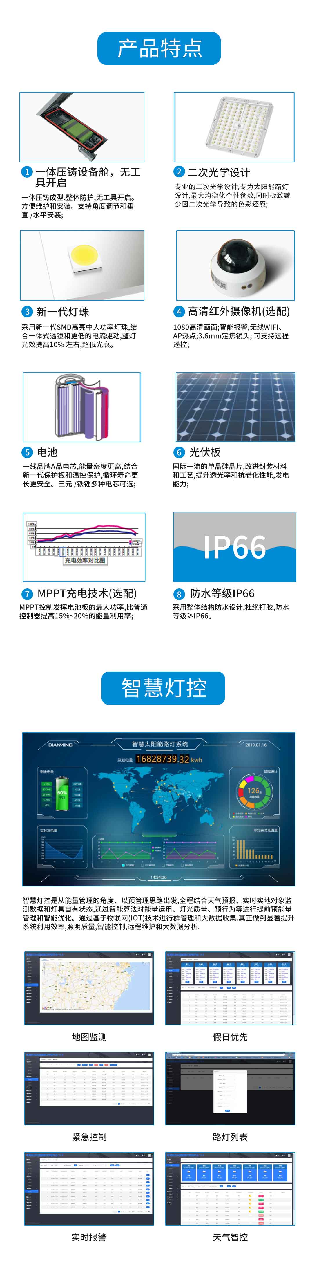 S5是電明科技專注于太陽能離網道路照明的第5代革新研發產品,不僅僅從結構、電子、工藝乃至一盞燈進行全新的革新,更從能量管理、智慧控制的角度基于物聯網(IOT)對太陽能運用進行了重新定義。全程結合天氣預報、人類習慣數據通過智能算法對能量運用、燈光質量進行提前預管理和智能優化。