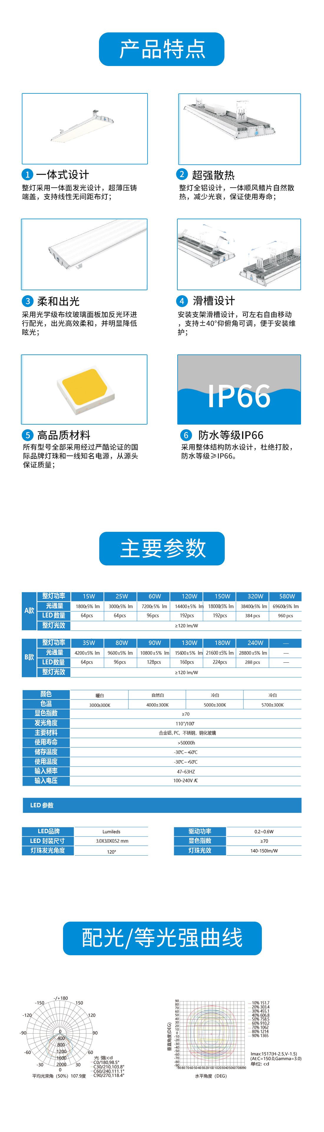 一體面發光設計,支持線性無間距布燈;采用光學級布紋玻璃面板加反光環進行配光,出光柔和;整燈采用全鋁設計,一體順風鰭片散熱;安裝支架滑槽設計,可左右自由移動并仰角可調;防水等級IP65。