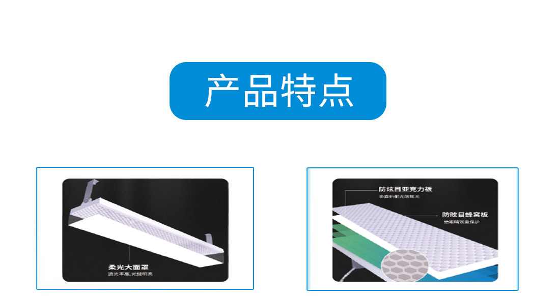 棱晶+蜂窩格柵板雙重防眩,防眩效果更好,無可視頻閃眩光: