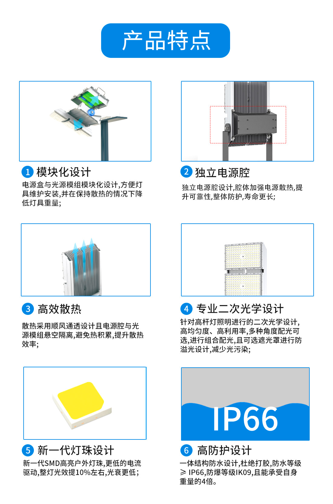 戶外籃球場燈,定制戶外籃球場照明方案,專業配光可達比賽級,結構穩定支持多種安裝方式,支持智能控制,高效散熱,IP66防水等級。